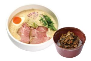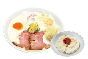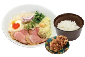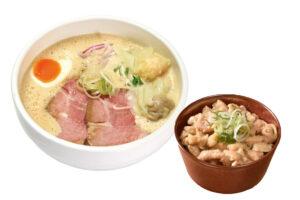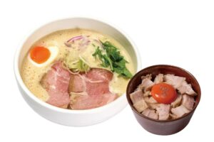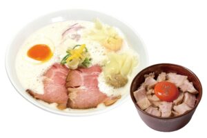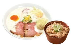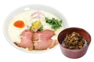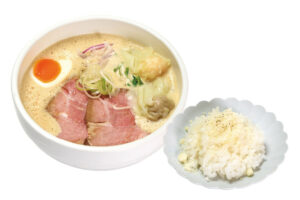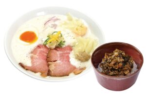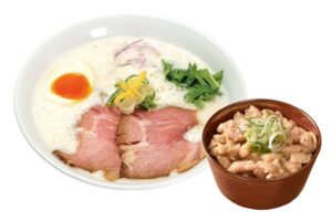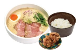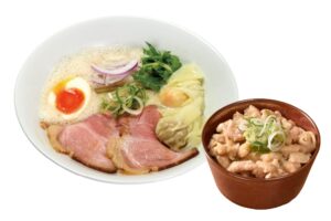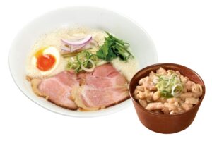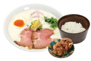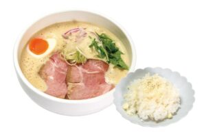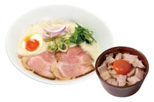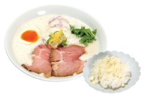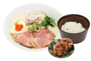 少しの宮崎・大分の豚骨を強火で煮込んだ濃厚鶏豚スープで、コクのあるラーメンをお楽しみください。